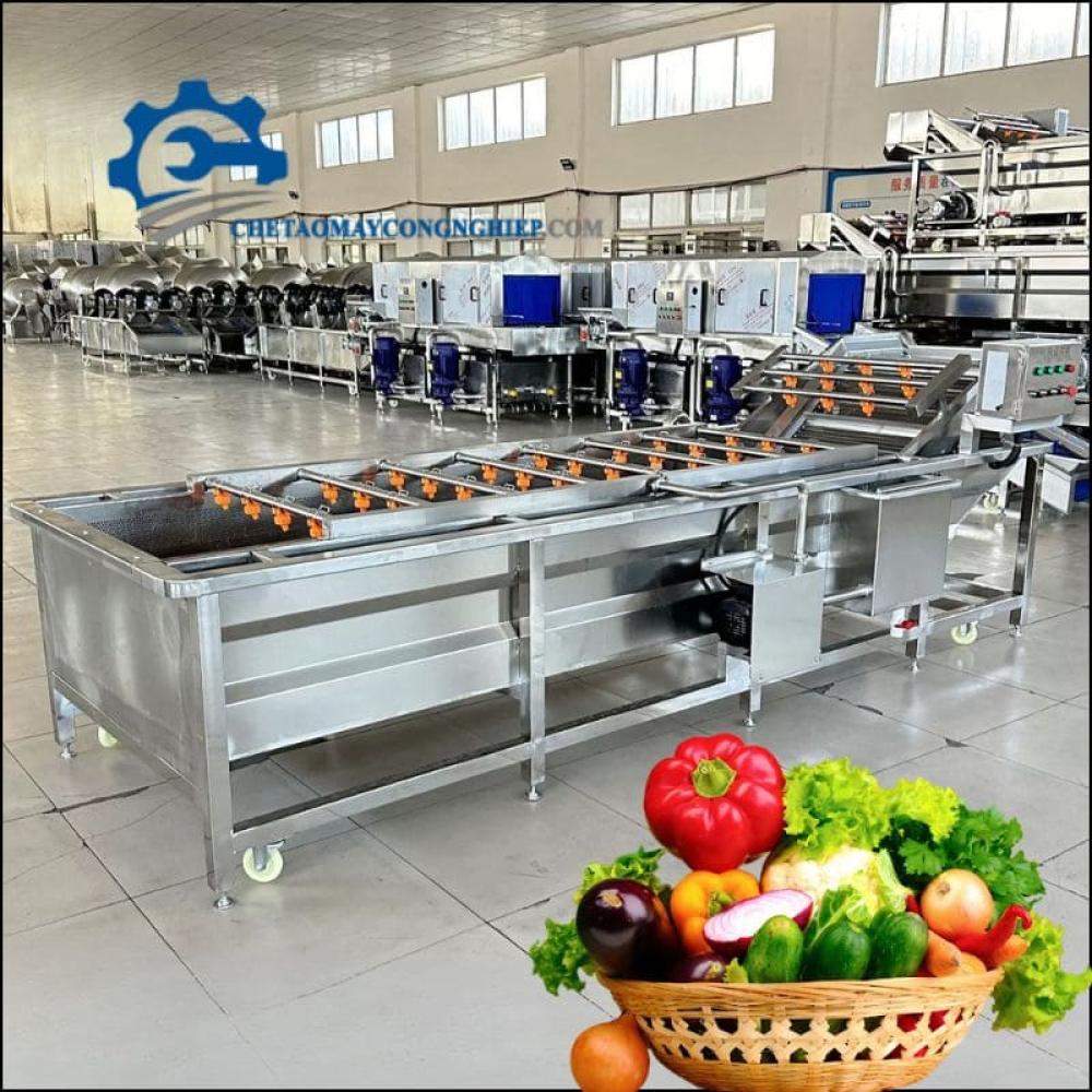 Đây là dùng máy chuyên dùng để làm sạch các loại rau củ, máy có công suất cực kì lớn theo đó là việc tạo ra các bọt khí đảm bảo đẩy sạch mọi bụi bẩn đất đai từ rau củ ra ngoài.